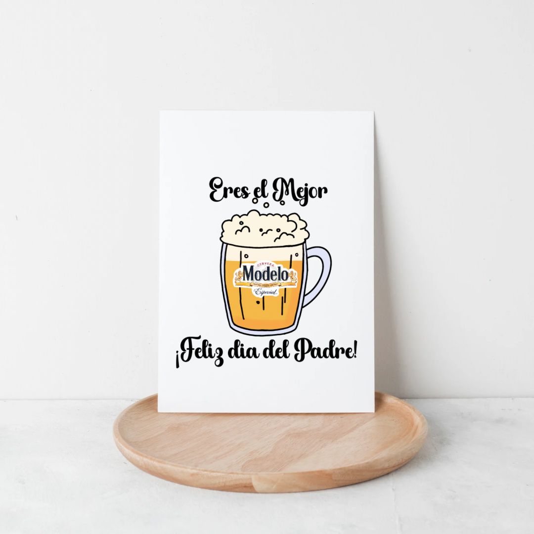 Esta tarjeta es un homenaje al papá que lo tiene todo: auténtico, fuerte y siempre presente. Inspirada en su cerveza favorita, combina humor y cariño para hacer de este detalle algo inolvidable.